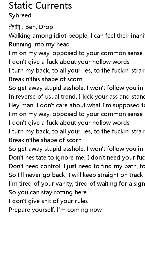 | So get away stupid asshole, I won' t follow you in cold static currents | |