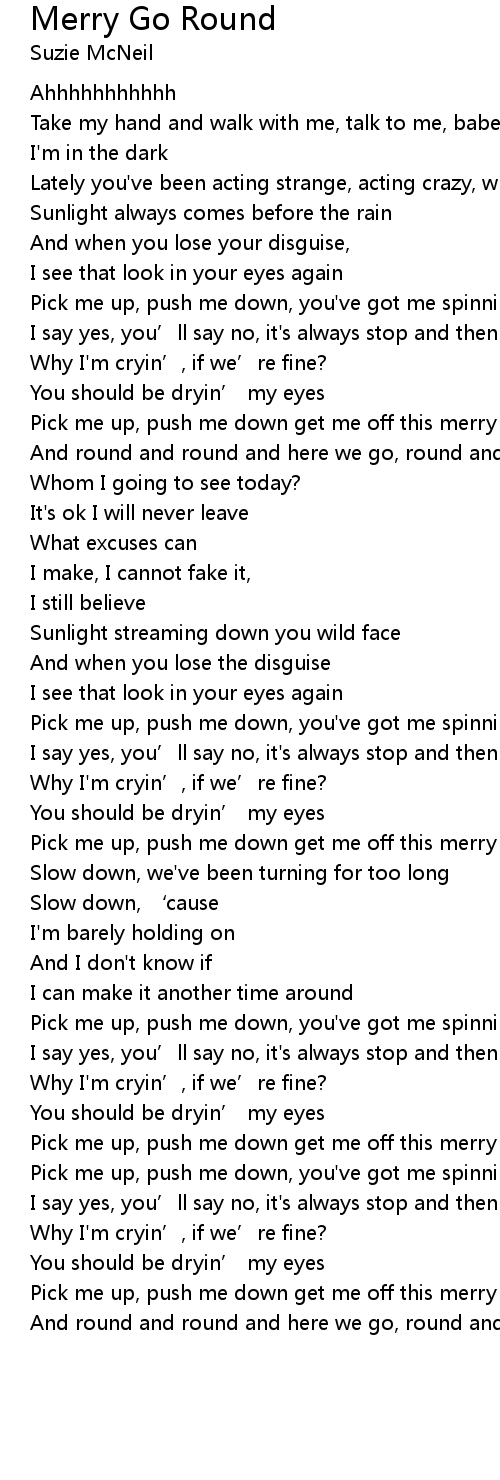 | Pick me up, push me down get me off this merry go round | |