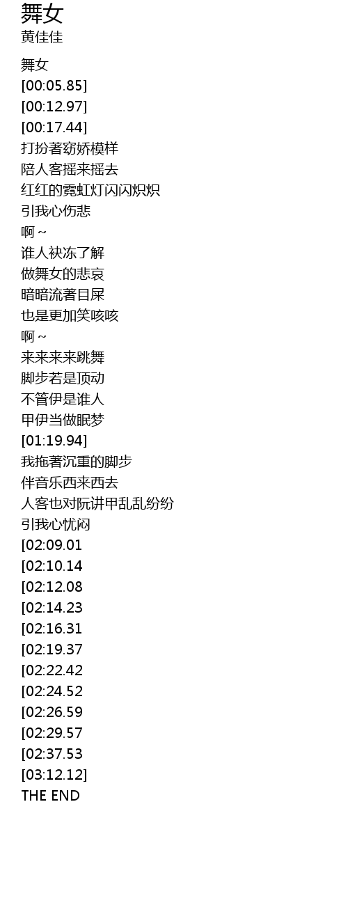 | [02:41.12][02:12.08] | 做舞女的悲哀 |