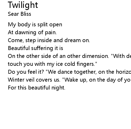 | Do you feel it? "We dance together, on the horizon Of eternal sadness," | |