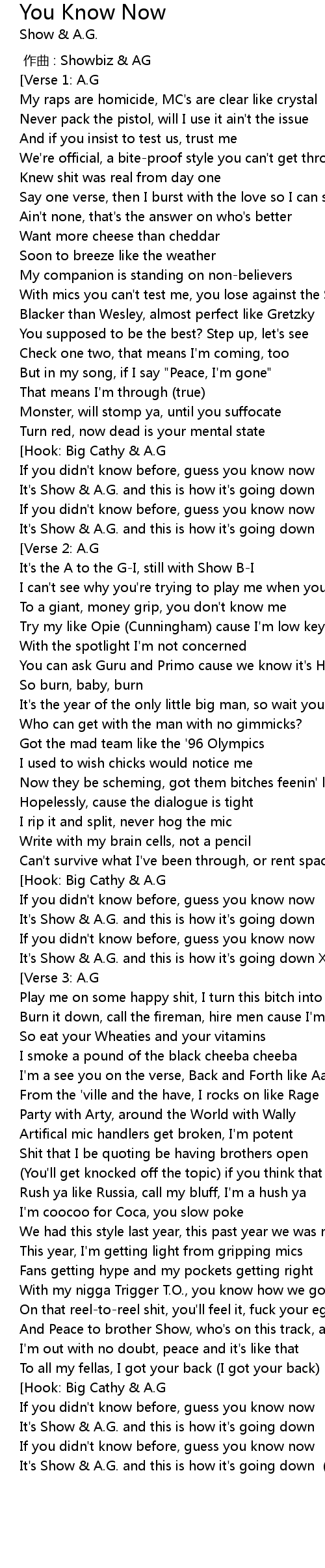 | [01:49.81] | It's Show & A.G. and this is how it's going down |