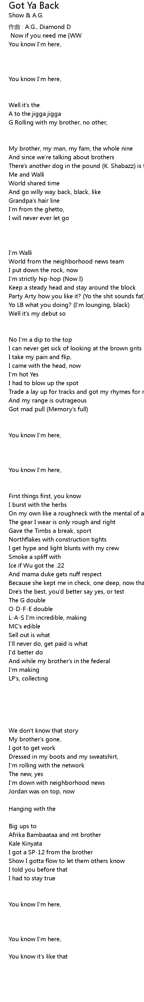 | 作曲 : A.G., Diamond D | |