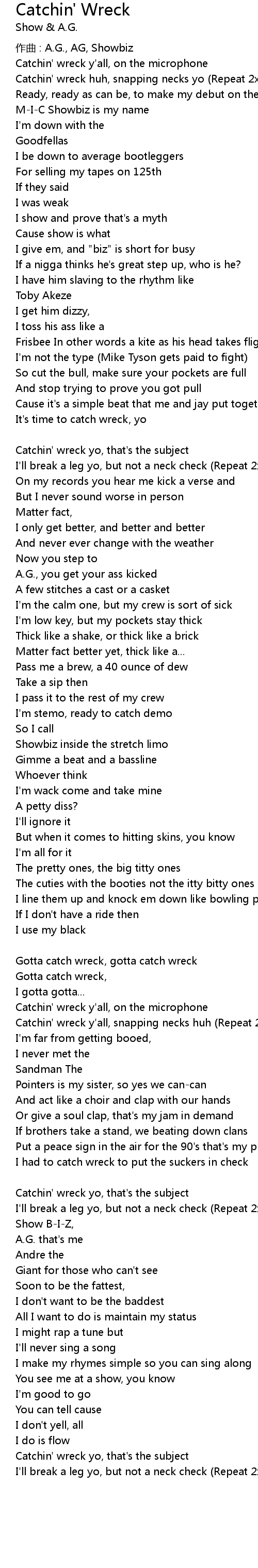 | I had to catch wreck to get wrecked A. G. | |