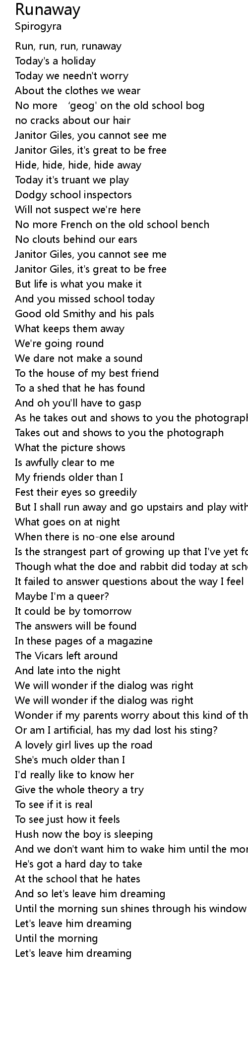 | Run, run, run, runaway | |