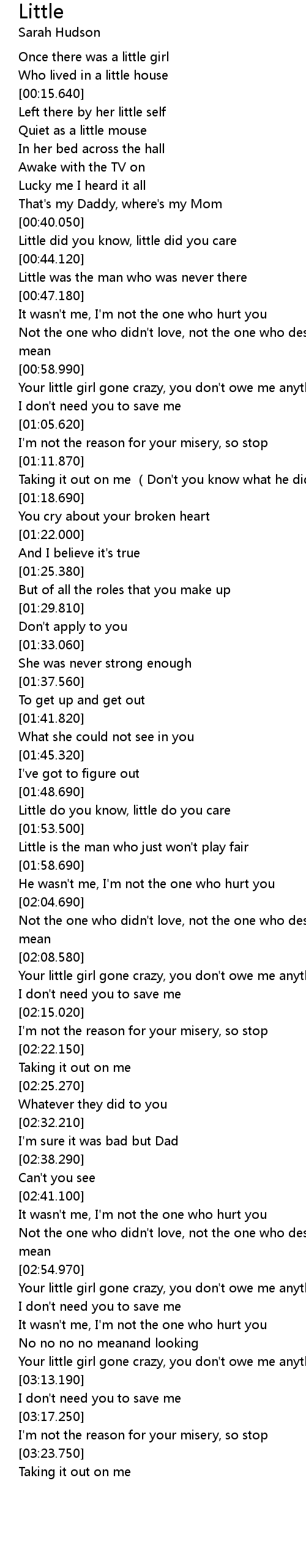 | [02:55.790] | Your little girl gone crazy, you don' t owe me anything |