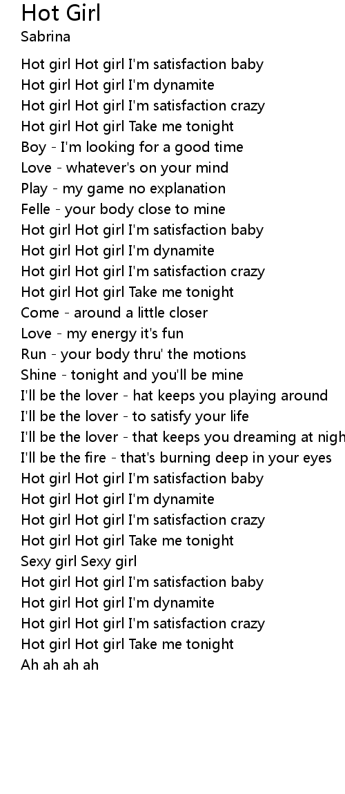 Hot girl Hot girl I'm satisfaction crazy |
