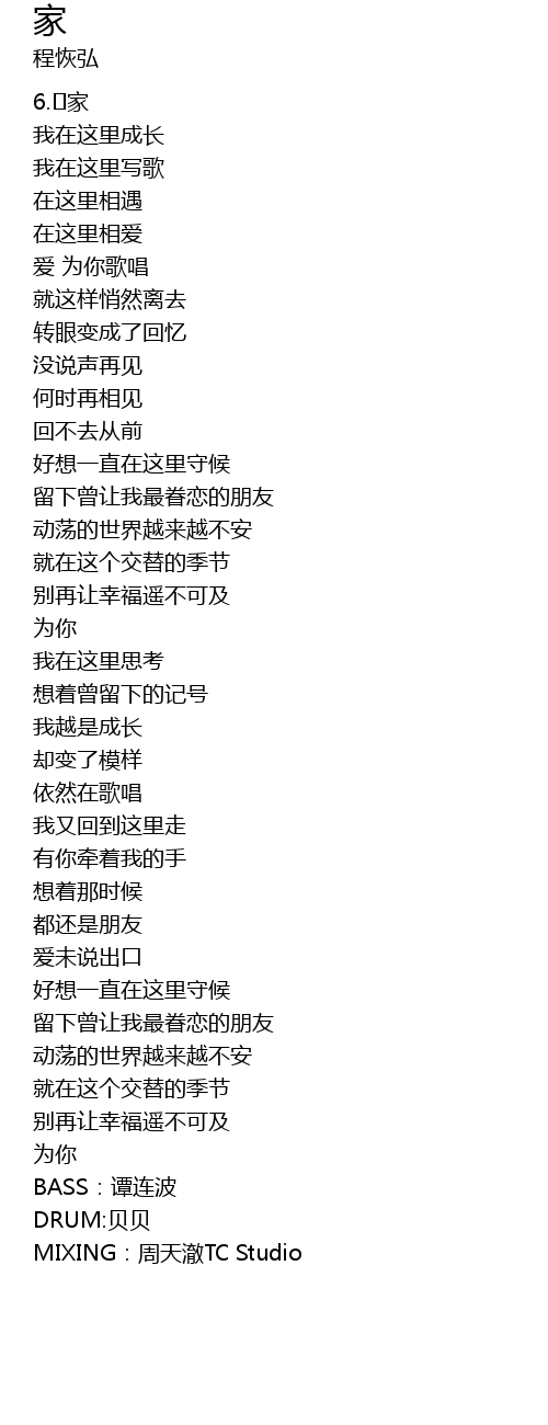 | MIXING:周天澈TC Studio |