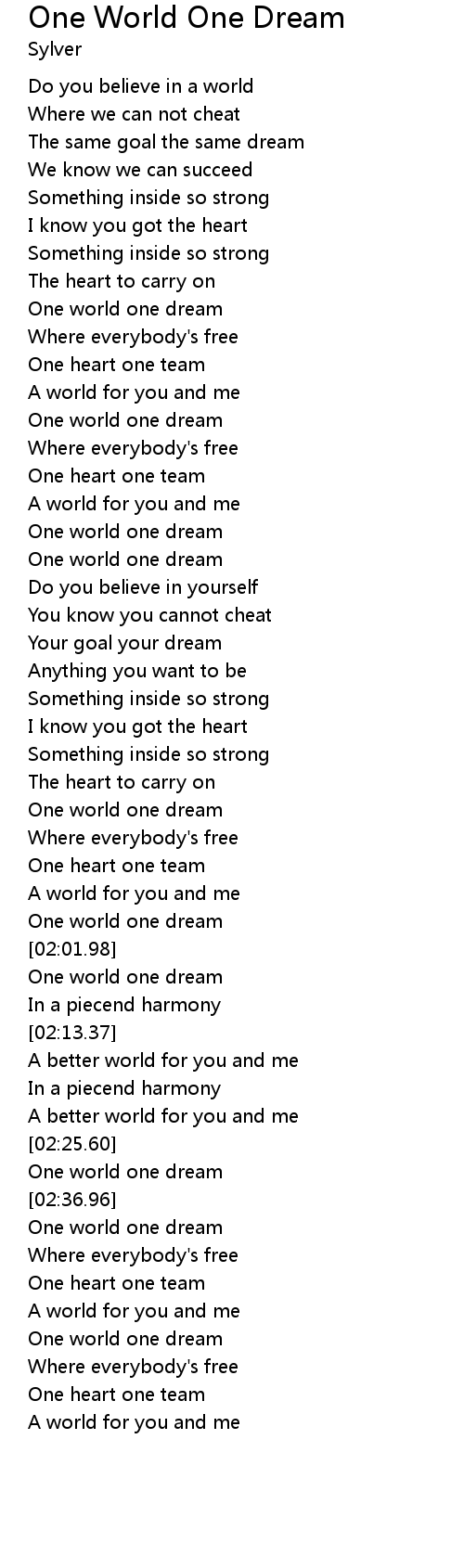 | [02:37.67] | One world one dream |