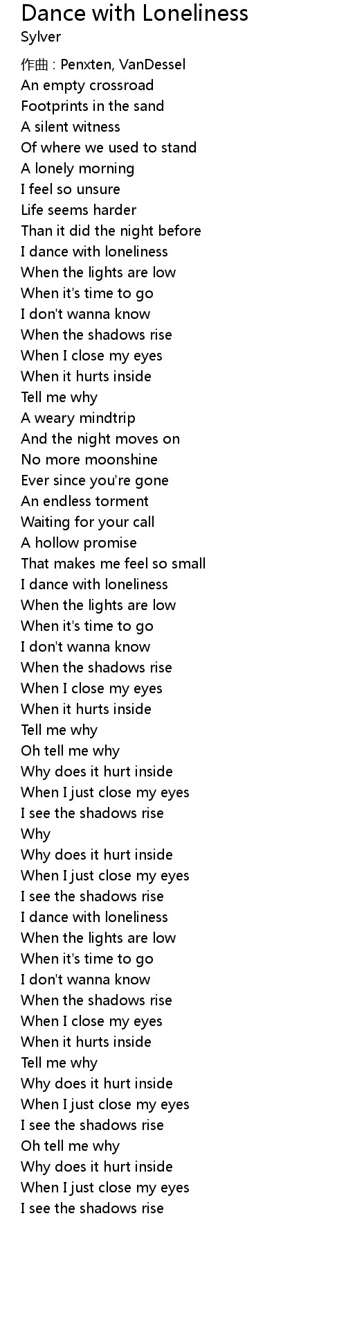 | 歌曲 | Dance with Loneliness |