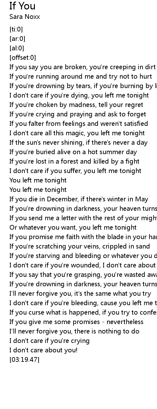 | [02:12.20] | Or whatever you want, you left me tonight |