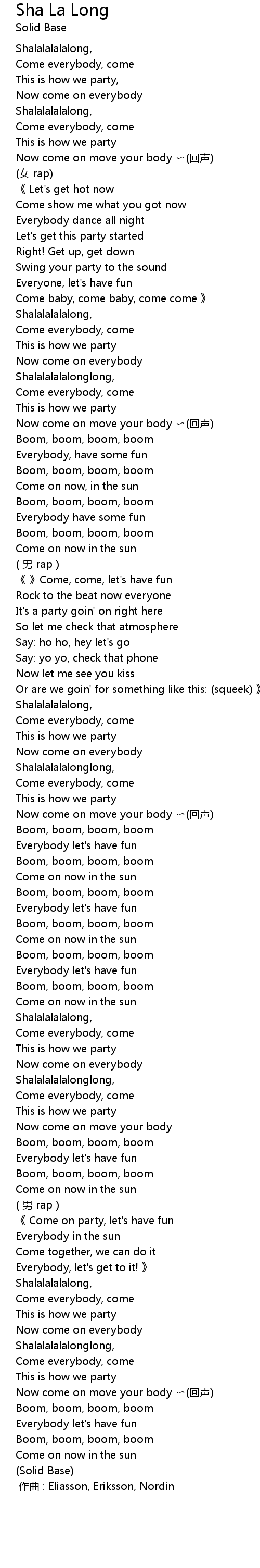 | [00:00.00] | 作曲 : Eliasson, Eriksson, Nordin |