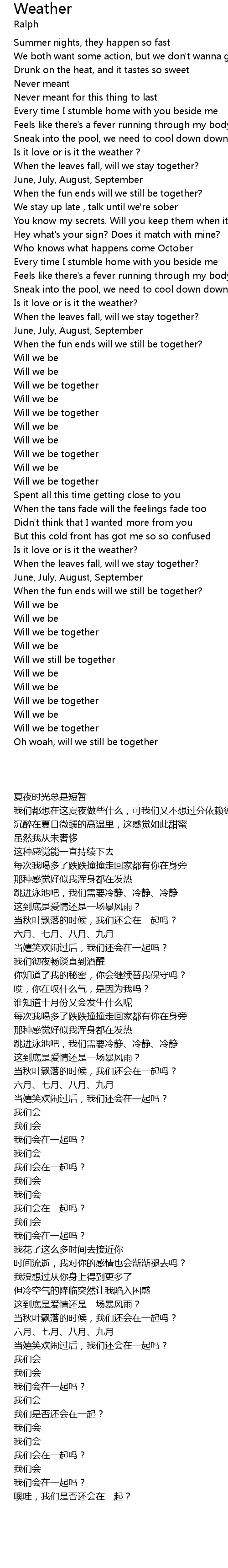 Oh woah, will we still be together |