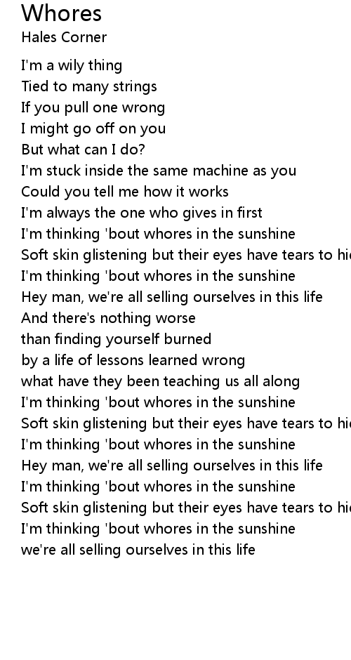 I'm thinking 'bout whores in the sunshine |
