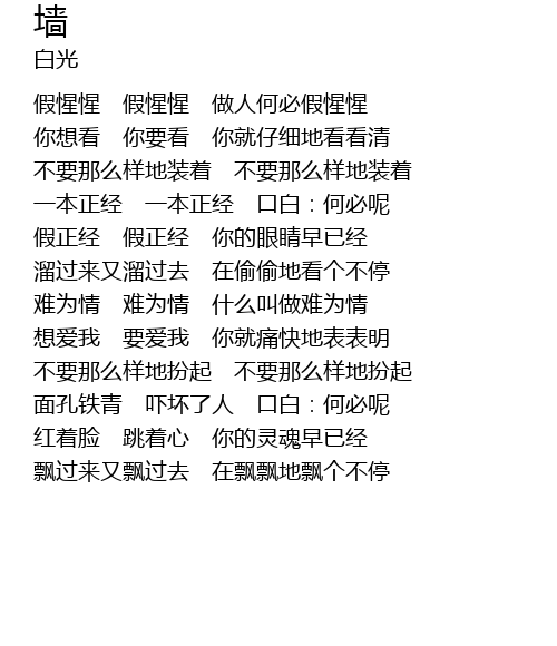| [00:11.53] | 假惺惺 假惺惺 做人何必假惺惺 |