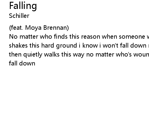 | No matter who finds this reason when someone who saves the fool no matter who shakes this hard ground i know i won't fall down no matter who holds this moment then quietly walks this way no matter who's wounding my heart i know i won't fall down |