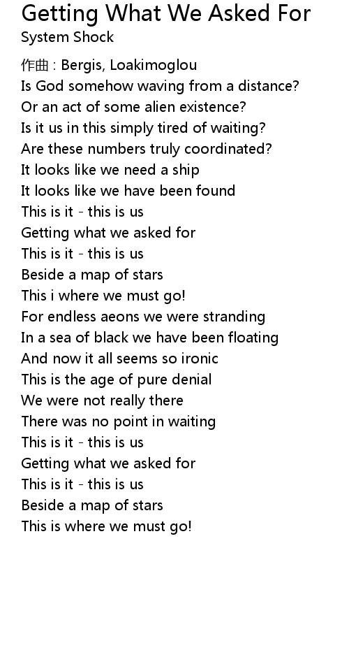 | 歌曲 | Getting What We Asked For |