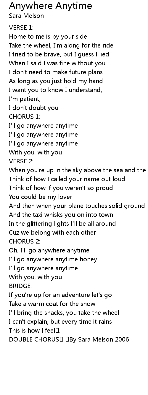 | I' ll go anywhere anytime | |