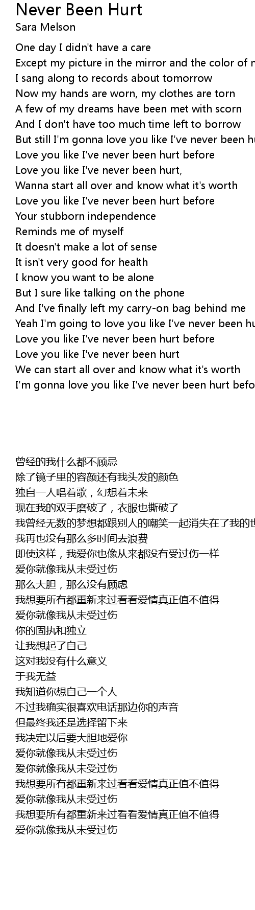 Love you like I've never been hurt |
