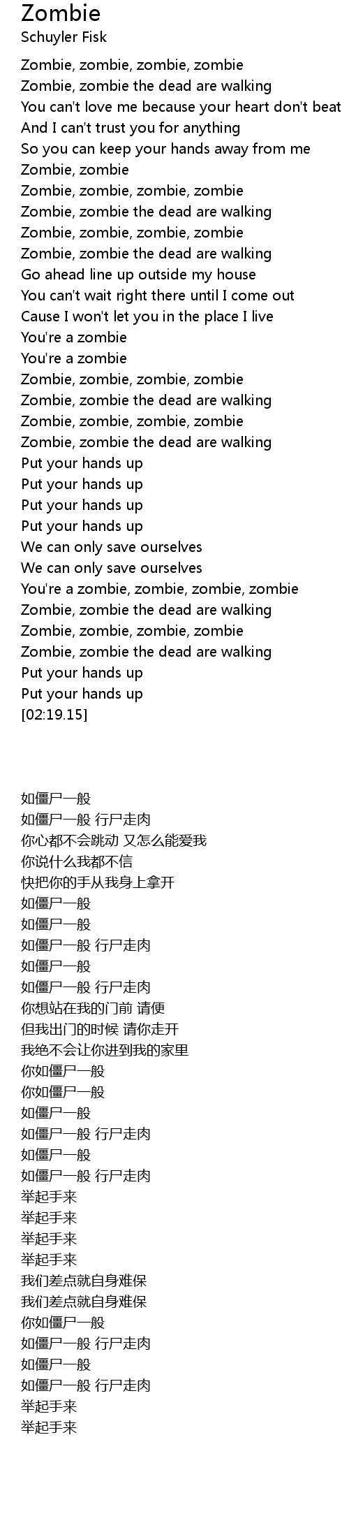 You're a zombie, zombie, zombie, zombie |