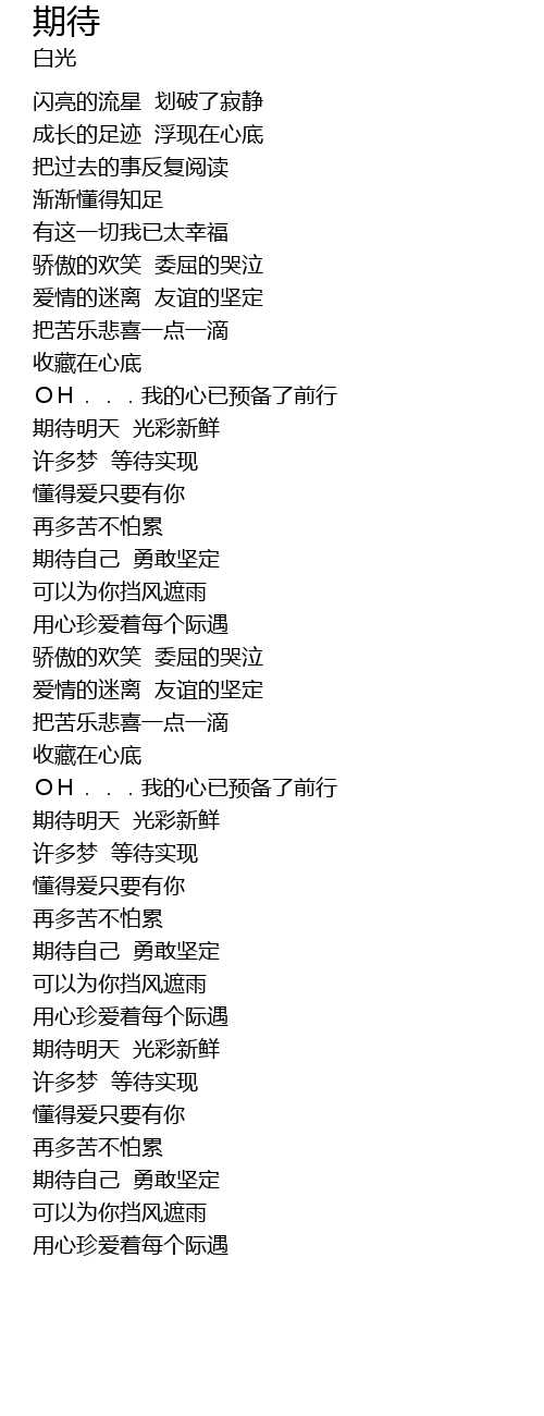 | [00:20.56] | 期待明天 光彩新鲜 |