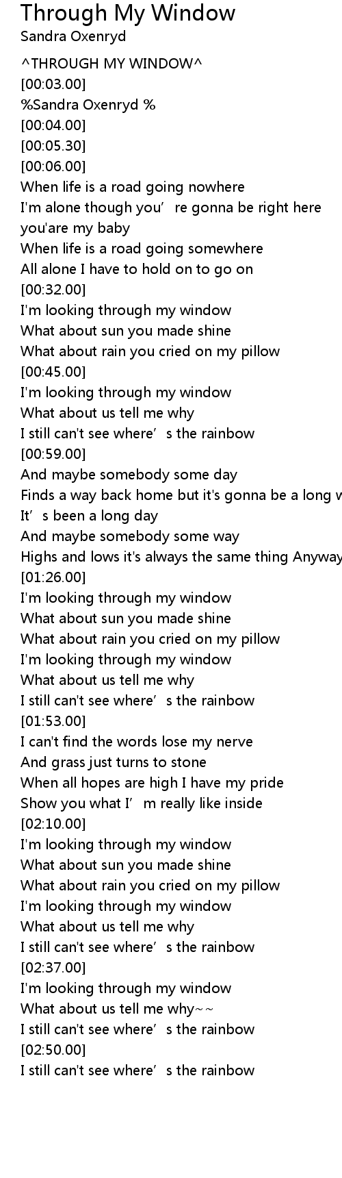 | [00:01.00] | ^THROUGH MY WINDOW^ |