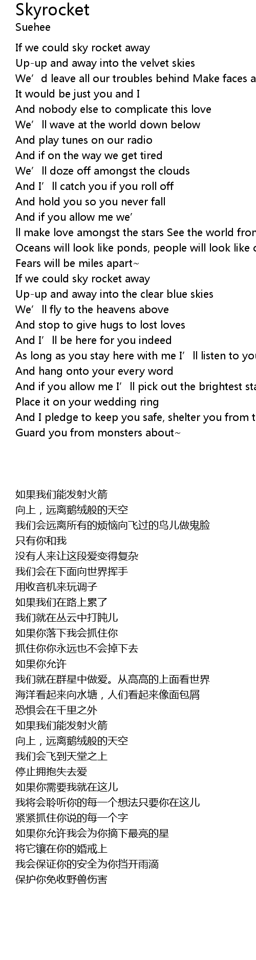 | [00:21.25] | If we could sky rocket away |