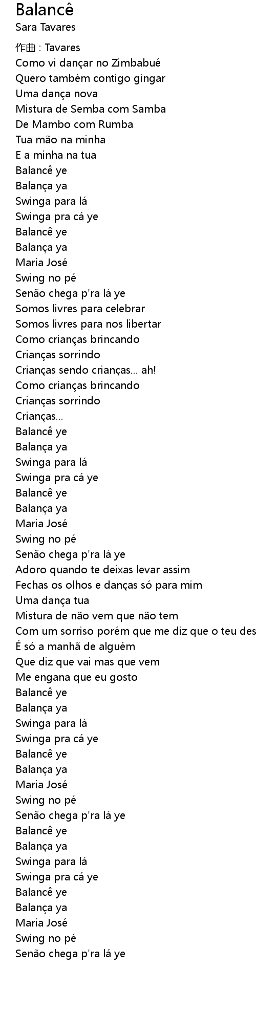 | 歌手 | Sara Tavares |