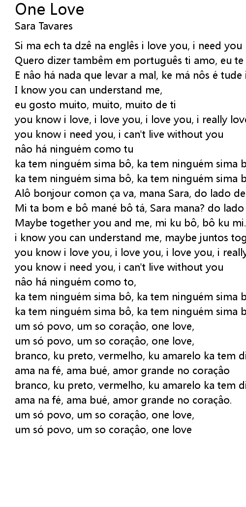 | um so povo, um so cora o, one love, | |