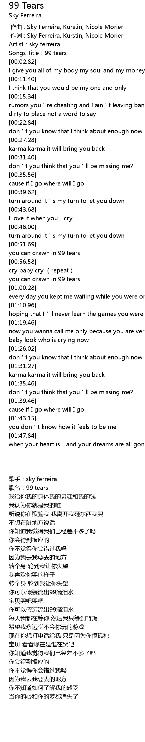 | [00:01.57] | 歌名:99 tears |