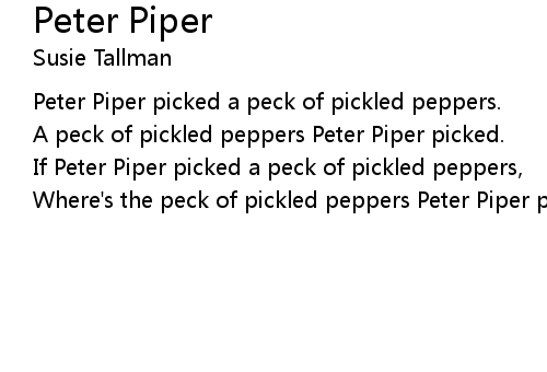 | [00:08] | A peck of pickled peppers Peter Piper picked. |