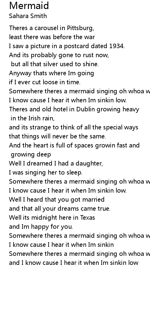 Somewhere theres a mermaid singing oh whoa whoa whoa |