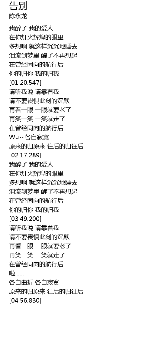 | [03:02.730] | 我醉了 我的爱人 |