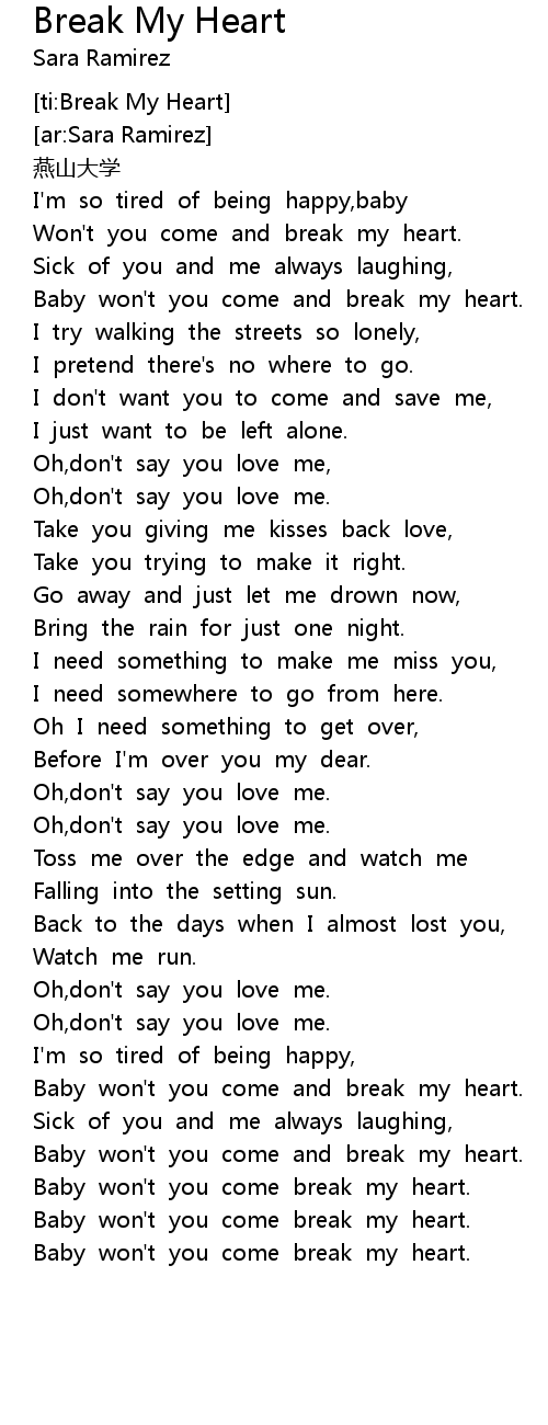 | [00:20.51] | Baby won' t you come and break my heart. |