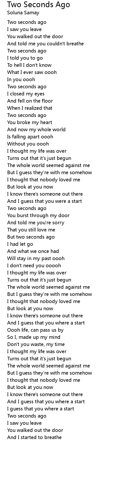 Two Seconds Ago 歌词