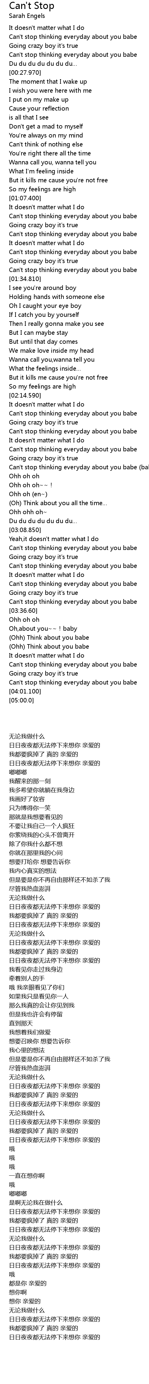 | [03:32.79] | Can' t stop thinking everyday about you babe |