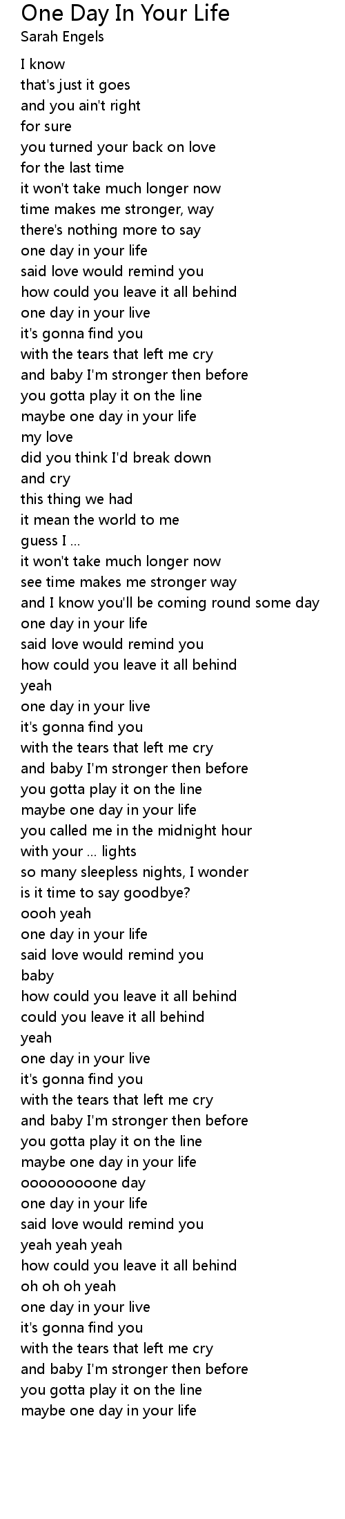 one day in your life |