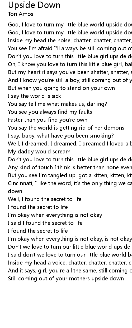 Oh, I know you love to turn this little blue girl, baby, upside down |