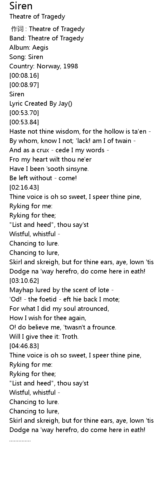 | [00:00.00] | 作词 : Theatre of Tragedy |