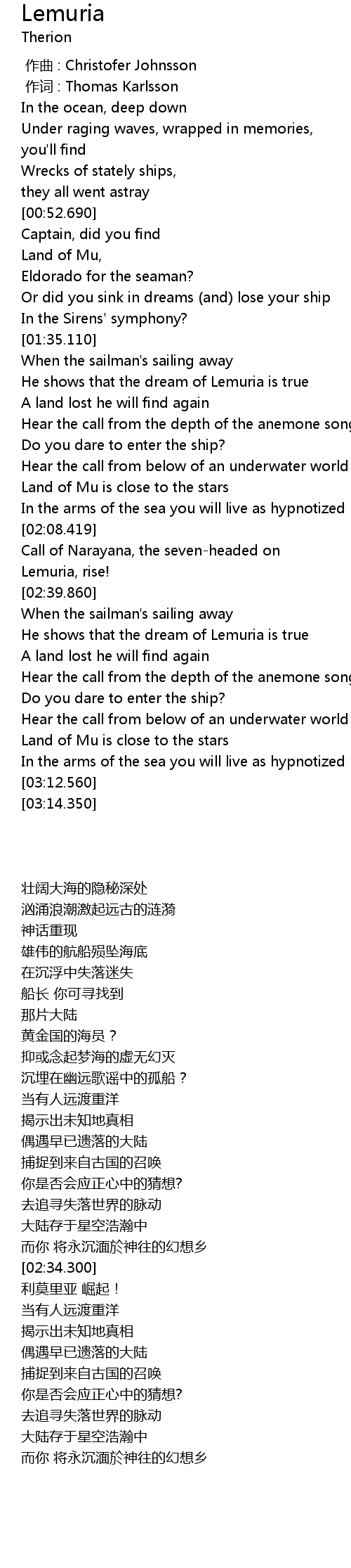 | [02:43.780] | He shows that the dream of Lemuria is true |