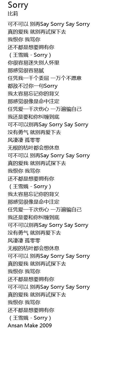 | [03:53.15] | ke bu ke yi bie zai Say Sorry Say Sorry |