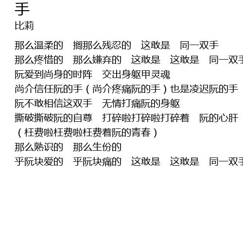| 乎阮块爱的 乎阮块痛的 这敢是 这敢是 同一双手 |