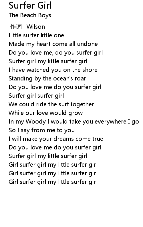 | [02:20.0] | Girl surfer girl my little surfer girl |