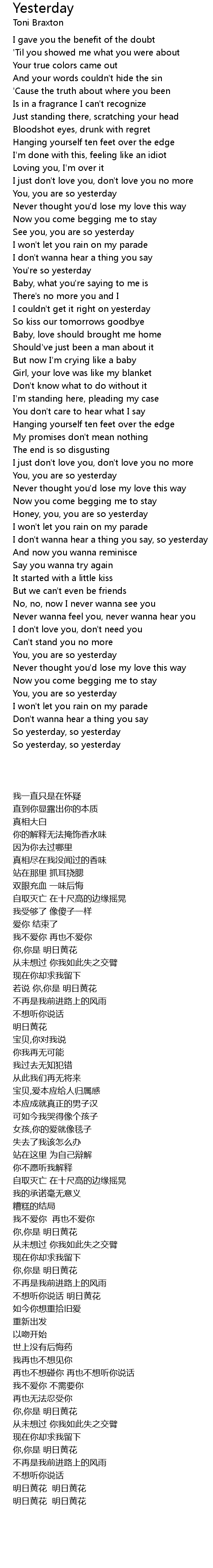 I don't wanna hear a thing you say, so yesterday |