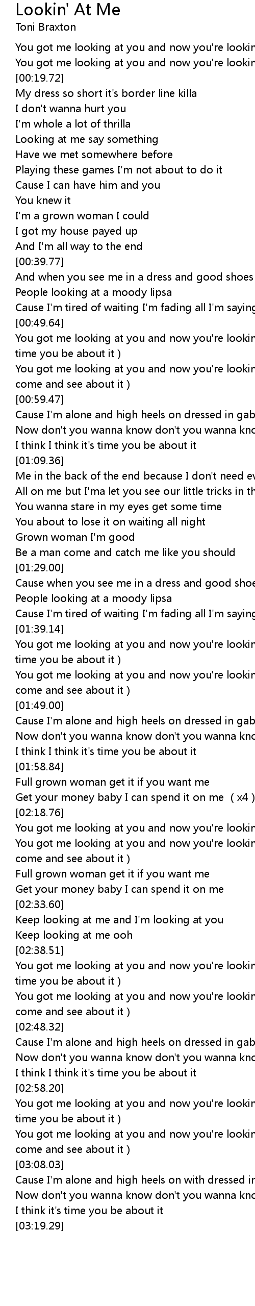 | [00:50.14] | You got me looking at you and now you're looking at me (I think it's time you be about it) |