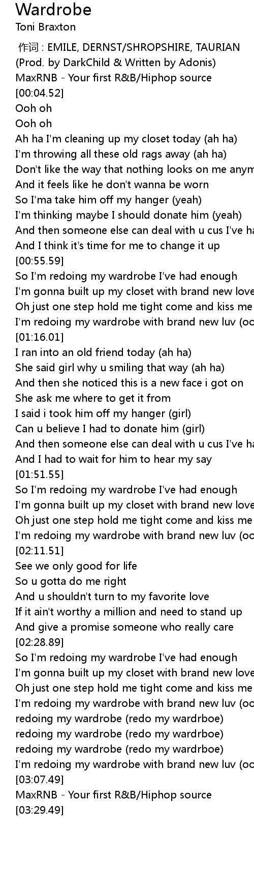 | [02:48.86] | redoing my wardrobe (redo my wardrboe) |