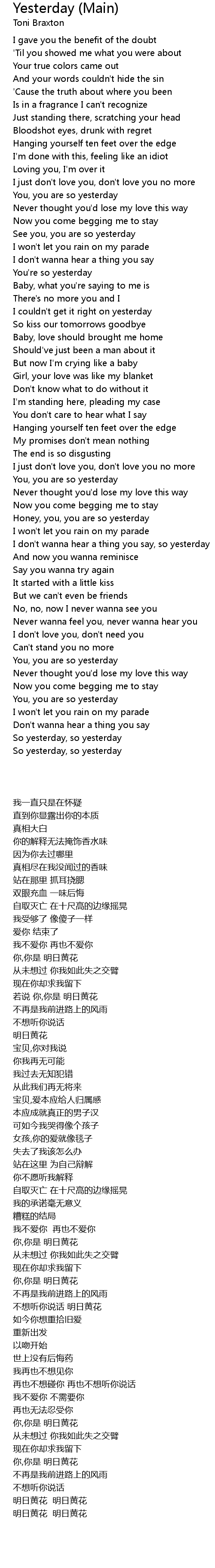 I don't wanna hear a thing you say, so yesterday |