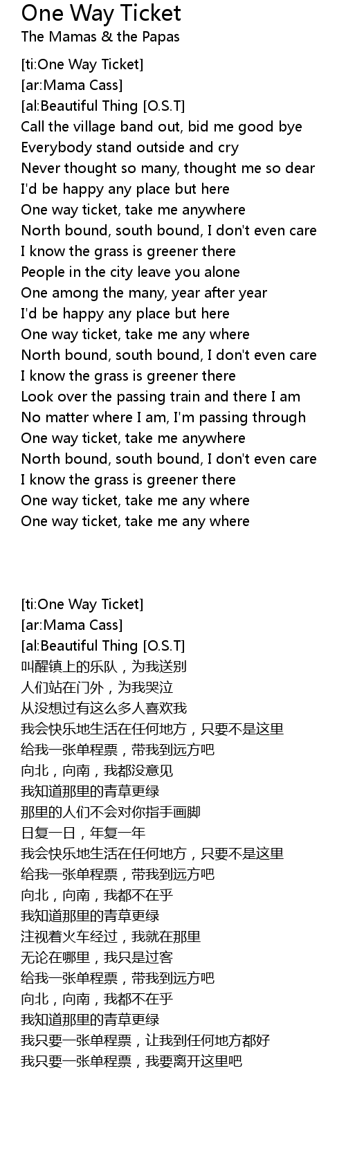 [ti:One Way Ticket] |