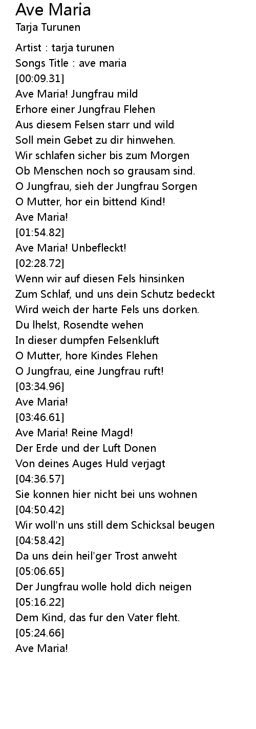 | [00:18.02] | Ave Maria! Jungfrau mild |