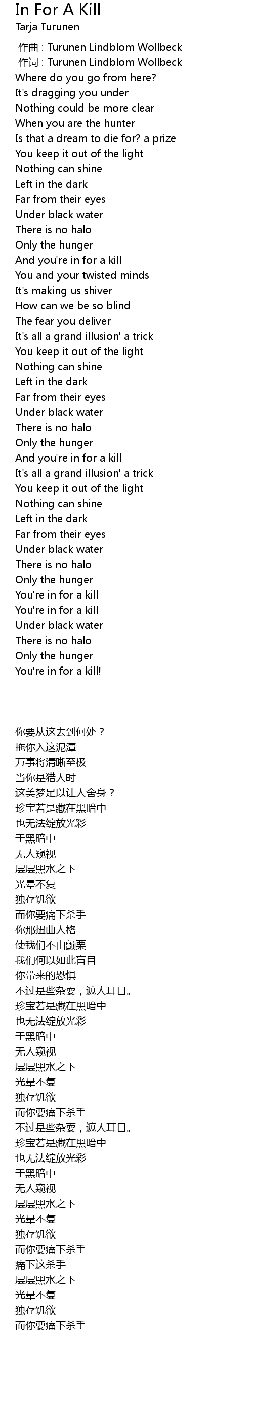 | [00:01.00] | zuò cí : Turunen Lindblom Wollbeck |
