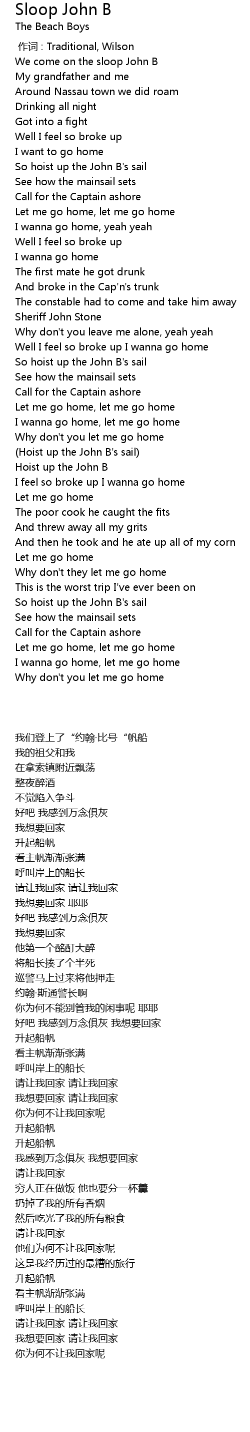 | 歌曲 | Sloop John B |